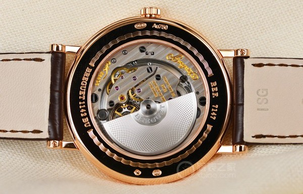 通過(guò)藍(lán)水晶透明玻璃后蓋,可以看到機(jī)芯的運(yùn)作,別有一番趣味。腕表搭載寶璣502.3SD自動(dòng)上鏈機(jī)芯,擁有45小時(shí)動(dòng)力儲(chǔ)備。品牌將“日內(nèi)瓦波紋”和“巴黎釘紋”分別融入機(jī)芯表面與自動(dòng)擺陀之上,賦予機(jī)芯一份優(yōu)雅而精美的觀賞性。采用翻轉(zhuǎn)內(nèi)嵌的杠桿式擒縱機(jī)構(gòu),帶硅質(zhì)擒縱叉及硅質(zhì)游絲,經(jīng)過(guò)6方位調(diào)校,能夠最大限度地避免腕表受到外界磁場(chǎng)的干擾,性能更卓越可靠。