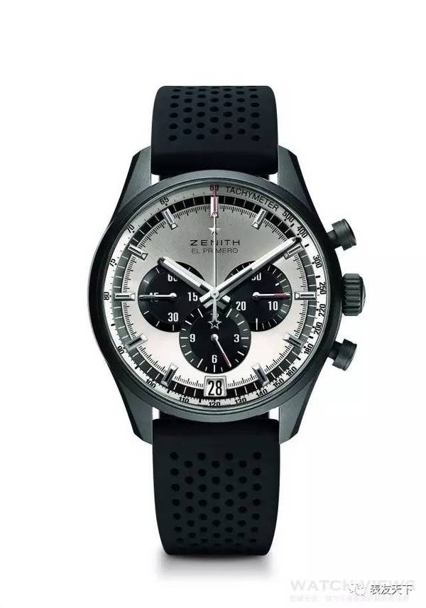 源自1969年的計時機(jī)芯典范,全新ZENITH El Primero 36,000 VpH腕表黑白雙雄,在黑色鉆孔橡膠表帶與黑色PVD鈦金屬三層折疊扣的烘托下更添動感。