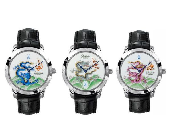 以紫禁城皇極殿前的“九龍壁”為設計靈感,格拉蘇蒂原創打造了Dragon Wall九龍壁套表,全套九只,全球限量九套。除了Meissen彩繪,更同時結合德意志機械工藝,每款腕表皆搭載Cal.100自動上鏈機芯,18K白金材質。晶瑩剔透的梅森瓷盤面上,手工繪著九龍,每條龍皆翻騰自如,形態各異,巧奪天工。