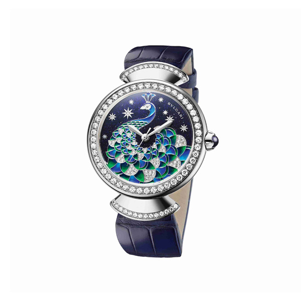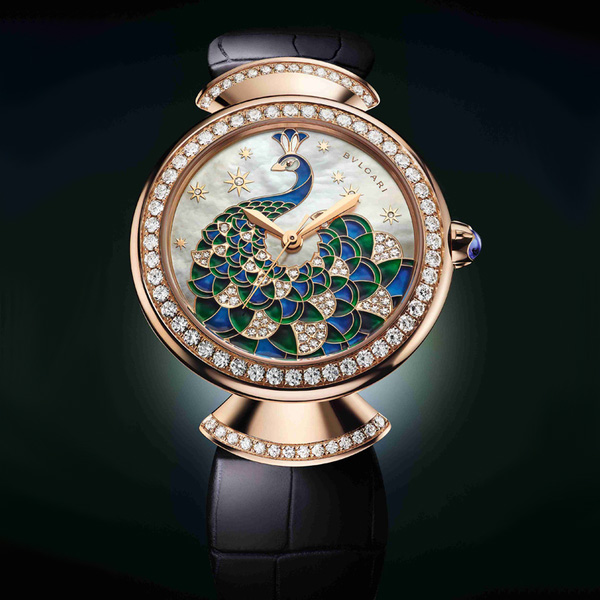 Bvlgari寶格麗推出三款全新Divas’ Dream腕表,一只傲然華美的孔雀立于其間,大氣典雅,工藝技術、高級珠寶與高級制表工藝的完美融合,在全新作品中體現(xiàn)得淋漓盡致。