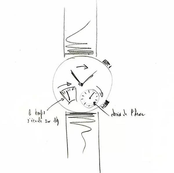 最初記錄下“守候時間”這個想法的草圖,至今仍被愛馬仕鐘表創意總監Philippe Delhotal悉心保存。
