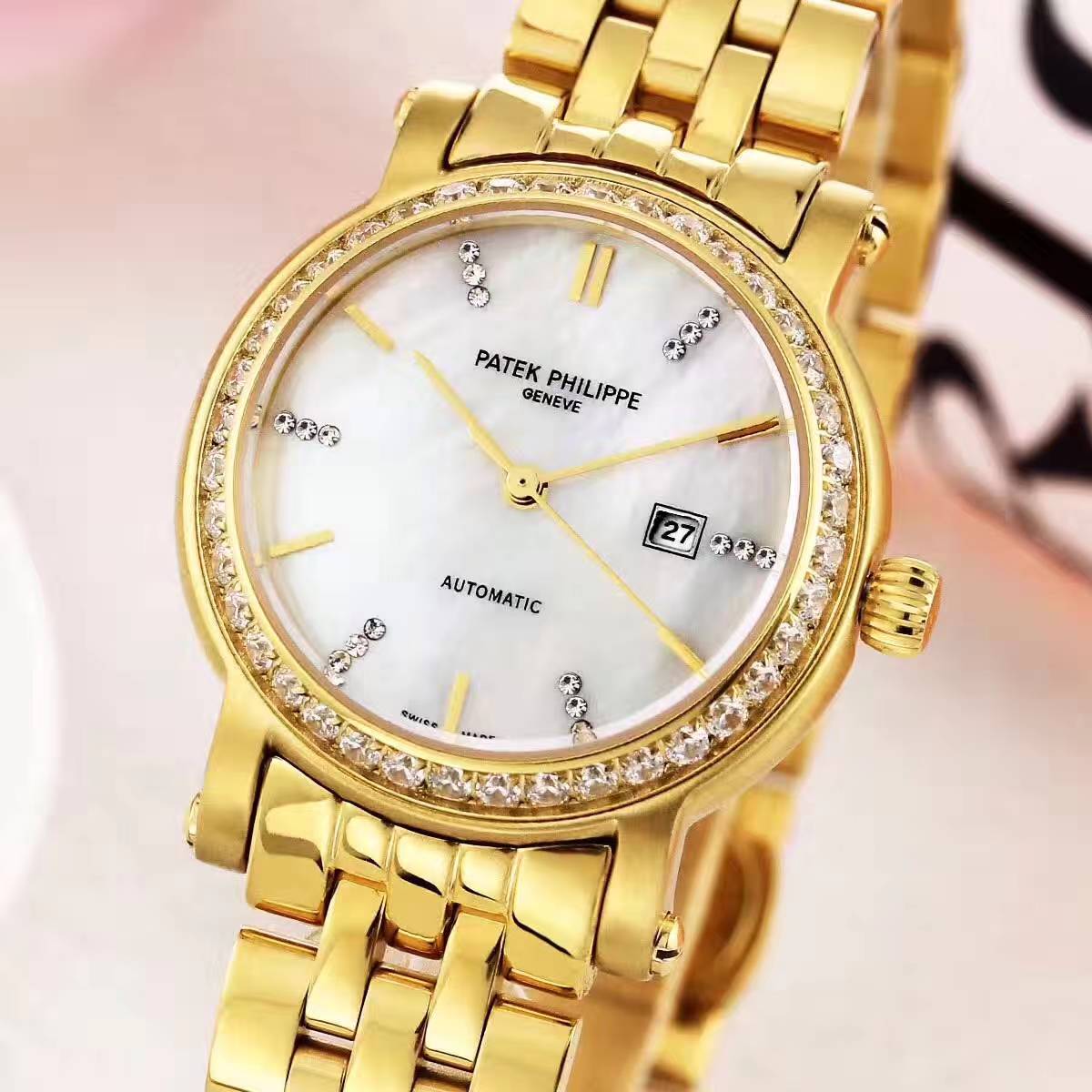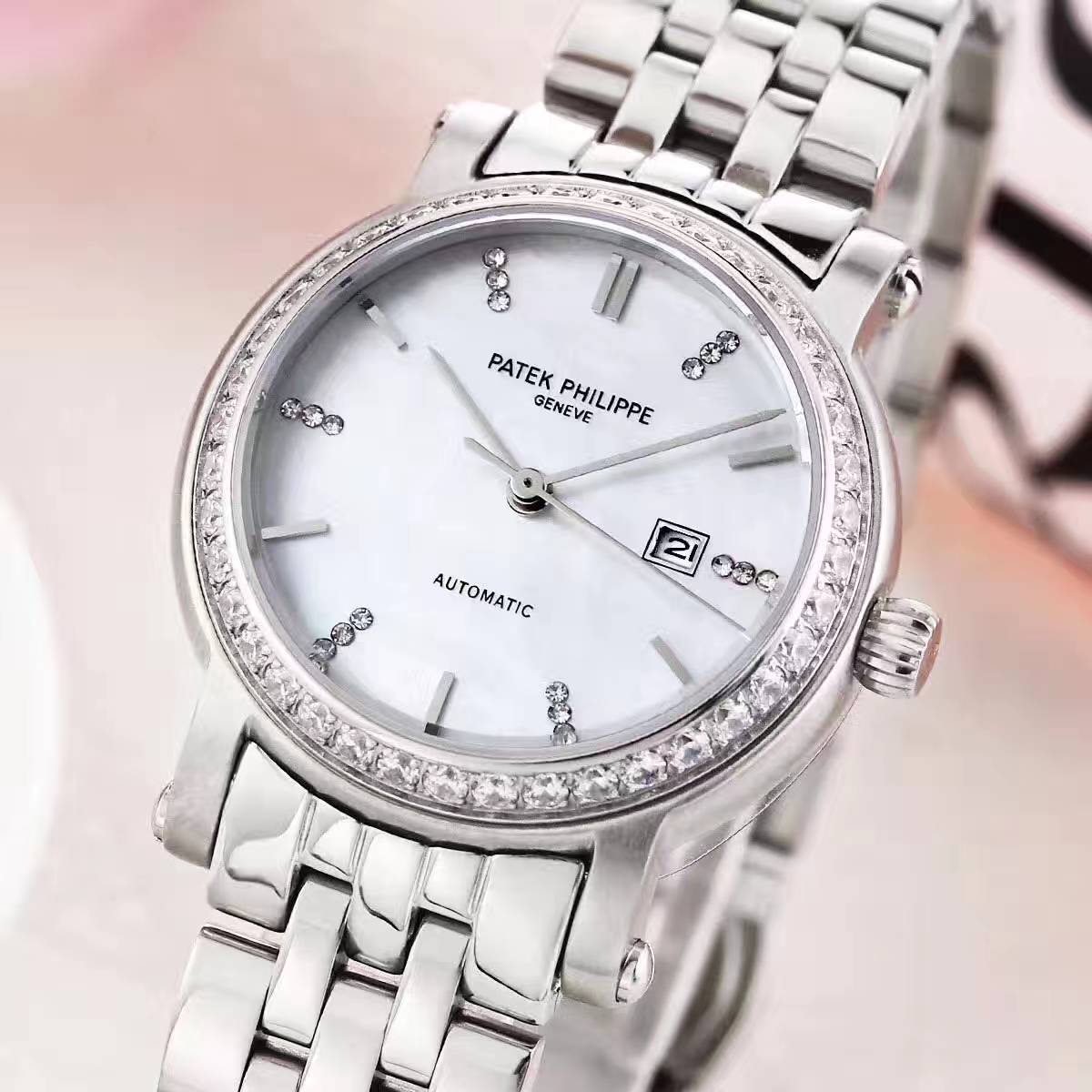 2017百達翡麗女款新款上市,簡約時尚,輕輕松松提高你的生活品質,走在時尚前沿,直徑32mm,厚10mm,搭載進口自動機械(零返修)藍寶石水晶玻璃鏡面,貝殼面,一表非凡 持之以恒.