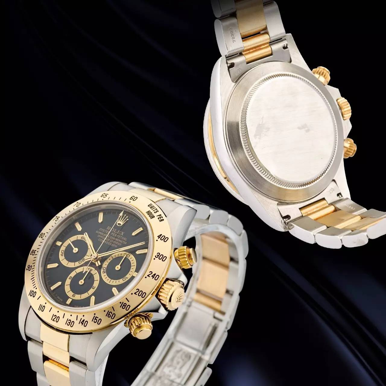 勞力士16523型號「COSMOGRAPH DAYTONA」精鋼及黃金自動上鏈計時鏈帶腕表,表殼編號U651490,年份約1999。