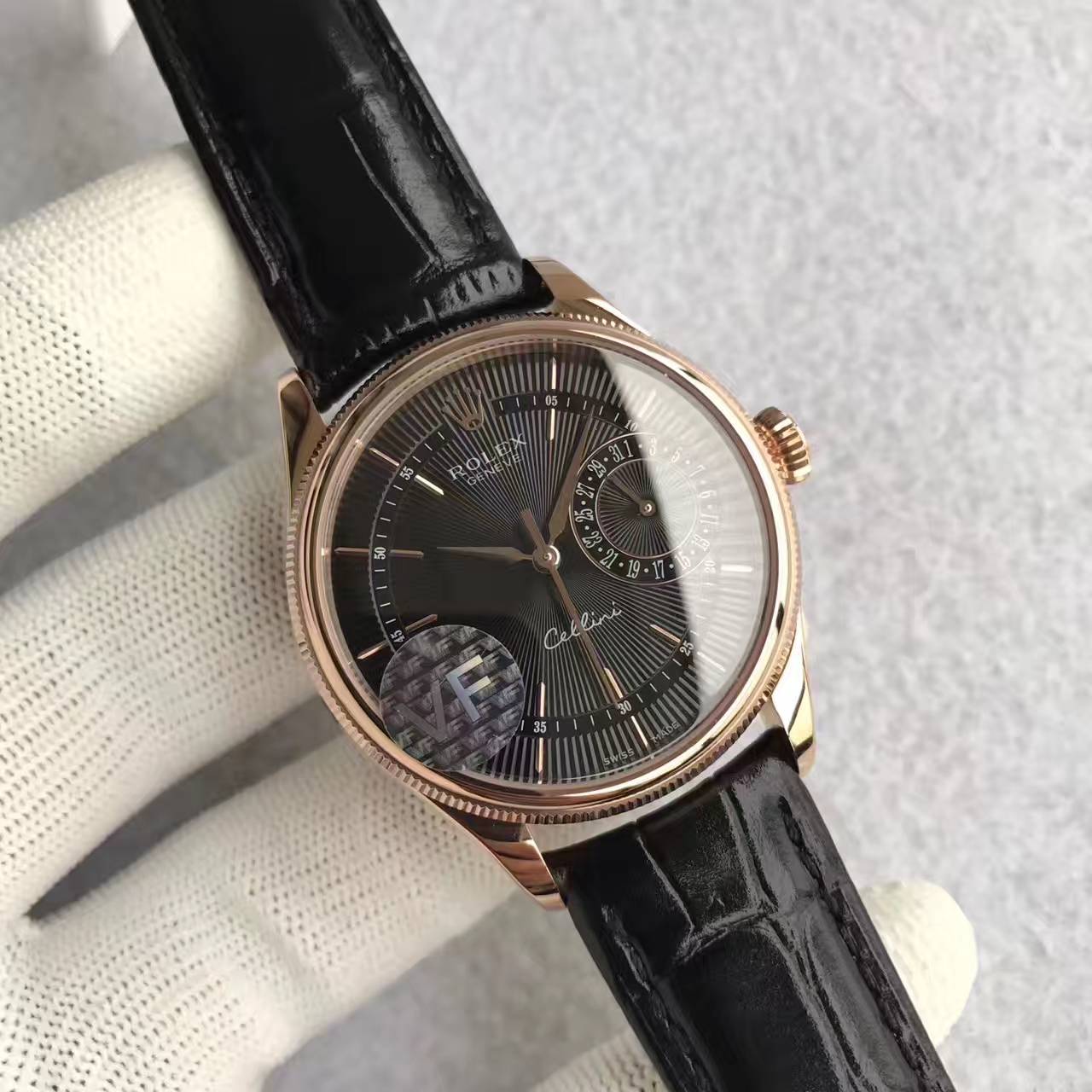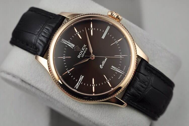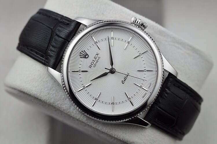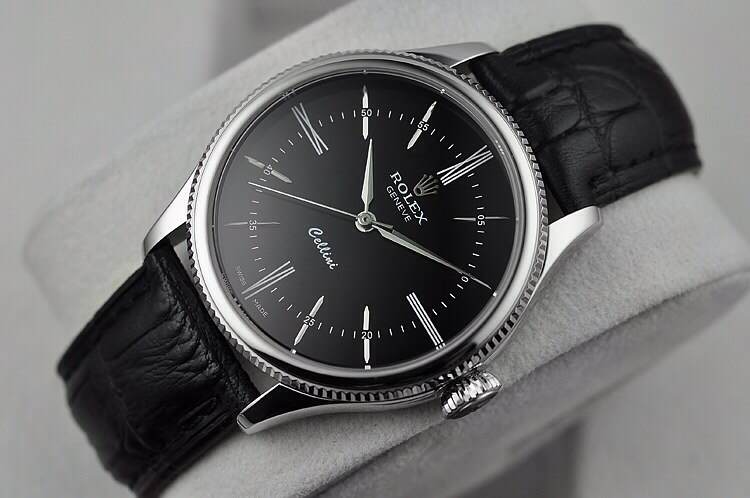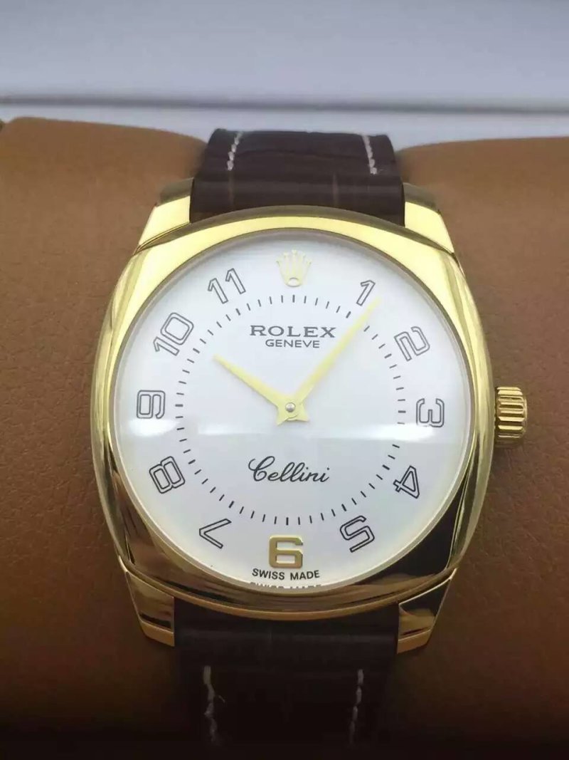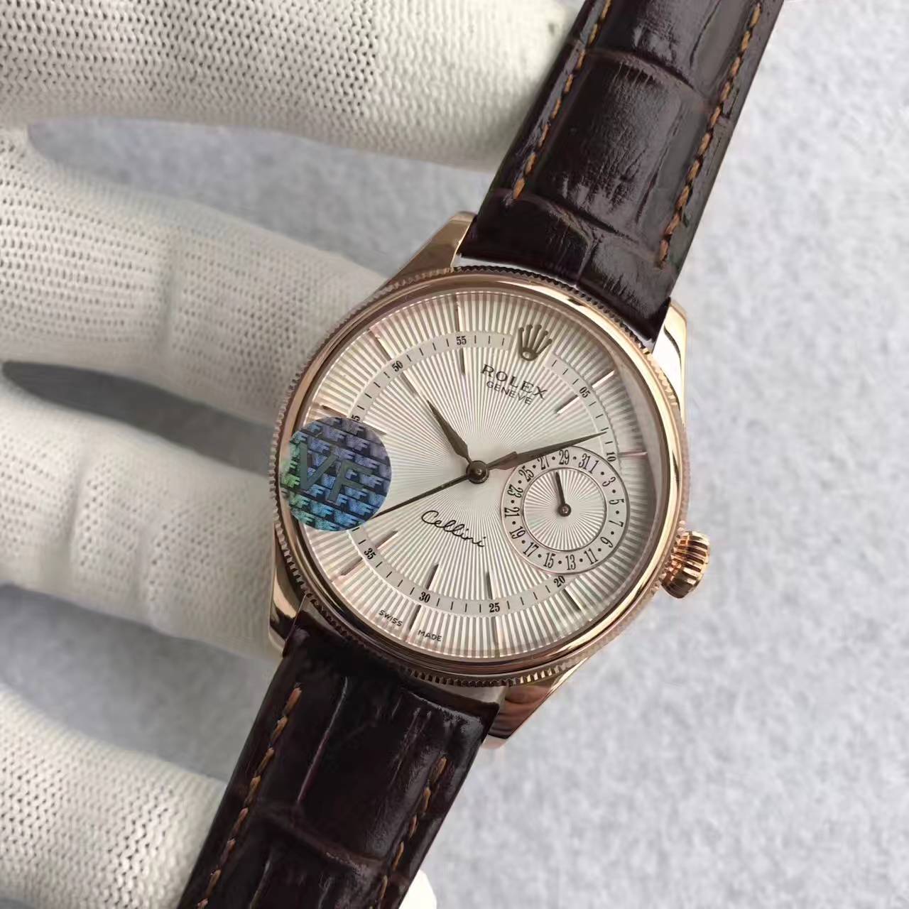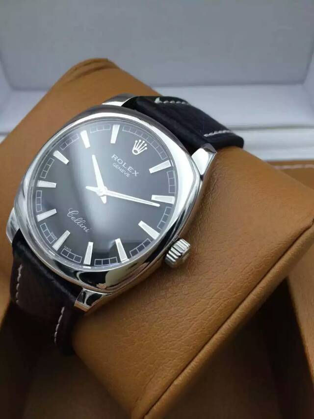 勞力士切利尼系列自動機械男表:直徑39mm經典牙圈造型,316精鋼打造,藍寶石玻璃鏡面耐磨耐刮,進口牛皮表帶。