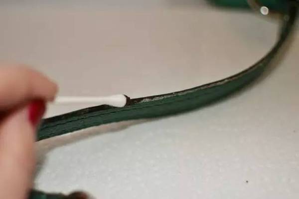2、漆皮有刮痕時,可以使用棉棒沾凡士林涂抹,少量多次,一點點清理。