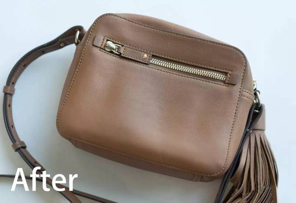2、如果趕時間,也可以用吹風機冷風吹干,最后給包包涂上一層皮具專用保養劑,讓它保持細膩的手感和光澤感。