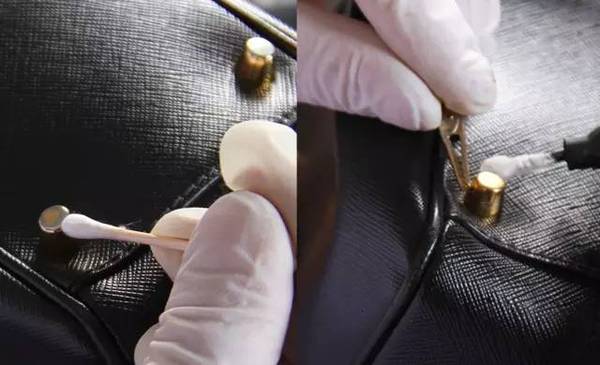 五金掉色、無光澤、氧化,是奢侈品包包最常見的問題之一,其原因主要是:五金長期與空氣接觸易發生氧化,日常使用的磨損,以及平時與化妝品、香水等化學物質的接觸,再加上使用過程中手部汗漬的侵蝕,個人汗漬的酸堿值不同,對金屬表面的傷害程度也不一樣。