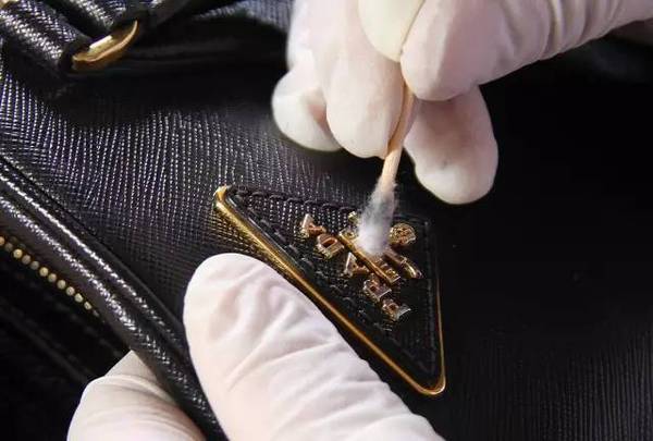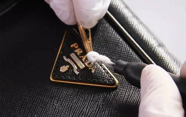 Prada的Logo鍍色比↑上面LV的鍍色要麻煩很多,因為電流夾無法夾住logo,只能用夾子尖部分別去接觸每個字母,進行逐一鍍色。(真的是特別特別挑戰人的耐心,在鍍色的過程中,一姐真的很佩服庫院長!)
