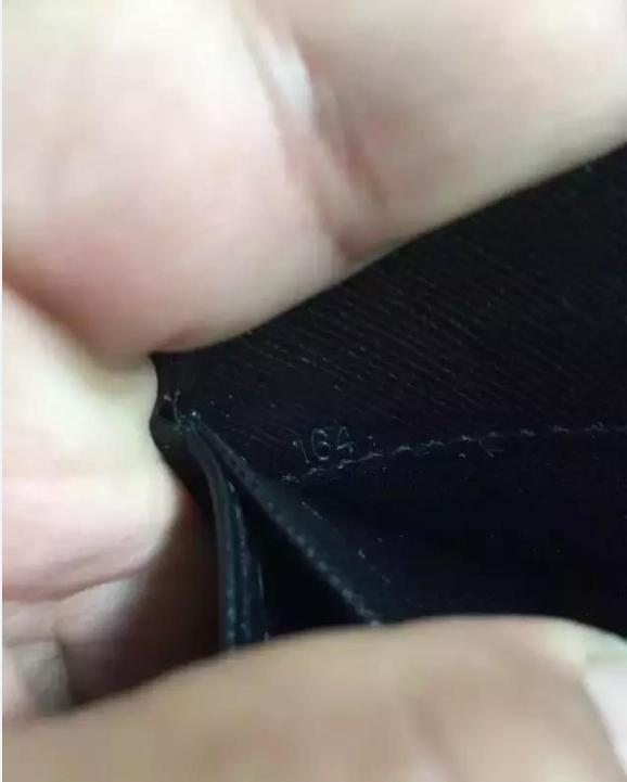 首先,代工代碼就是在Prada大包內襯布側面縫制的標,比如著名的殺手包就是在拉鏈小內袋里。而錢夾則是鋼印壓制,不是縫制標。