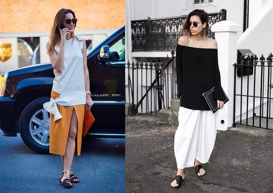 這種與連衣裙的搭配本淫還是灰常欣賞的,不僅拉高腰線顯腿長,還非常的別具一格,這樣穿絕對就是標準的時尚 Icon 啊!