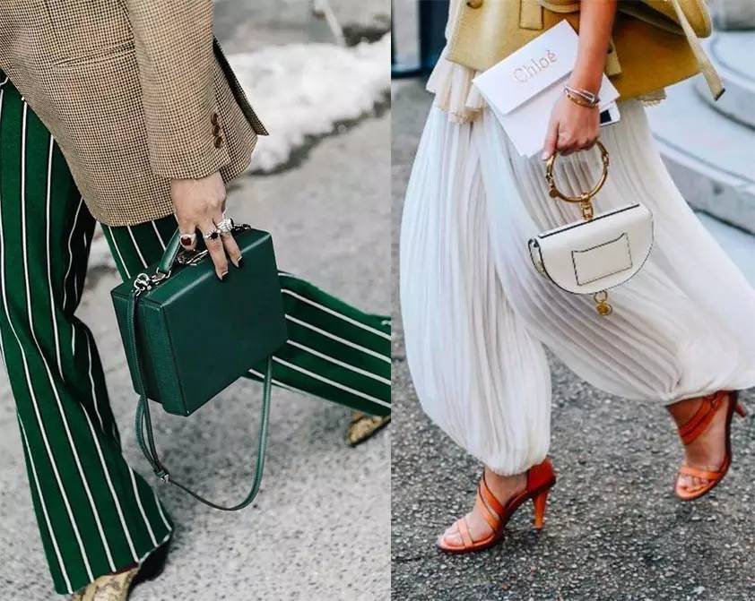 像這種小盒子狀的手拿包現在也是正當紅,立體的包身更加硬朗,相比信封包也要更能裝一些。