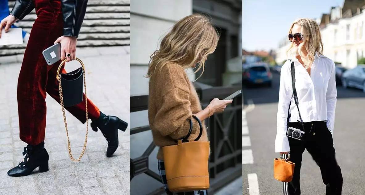 水桶包和圓環手柄的元素碰撞也是火花四射,寬幅的包包配上秀氣的圓環更顯女人的精致與婉約。