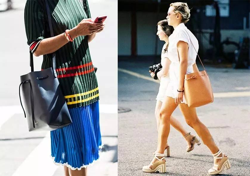 這兩種造型的水桶包算是最傳統、最貼合水桶兩個字的包包辣~飽滿而又豐富色彩讓人看到第一眼就被視覺沖擊到,不過,右邊這種沒有包蓋和拉鏈的設計使用時要小心哦,原因泥們懂得~~