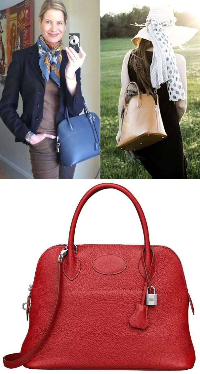 保齡球包(Bolide):愛馬仕最典雅的包袋 Bolide是愛馬仕的第一款有拉鏈的包袋,較為硬挺,尺寸選擇多,歷史也很悠久;趥鹘y美學的設計,散發著典雅氣質,上窄下寬,適合放在車座上。
