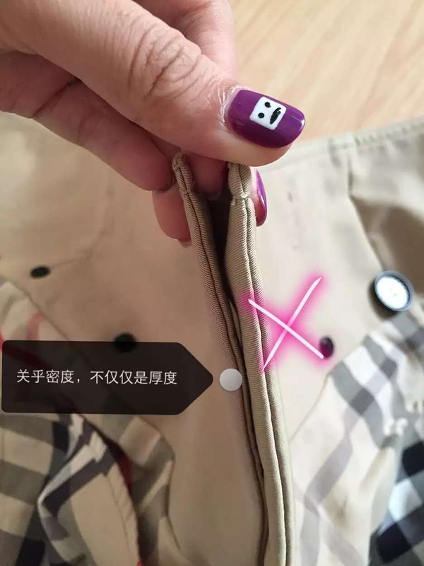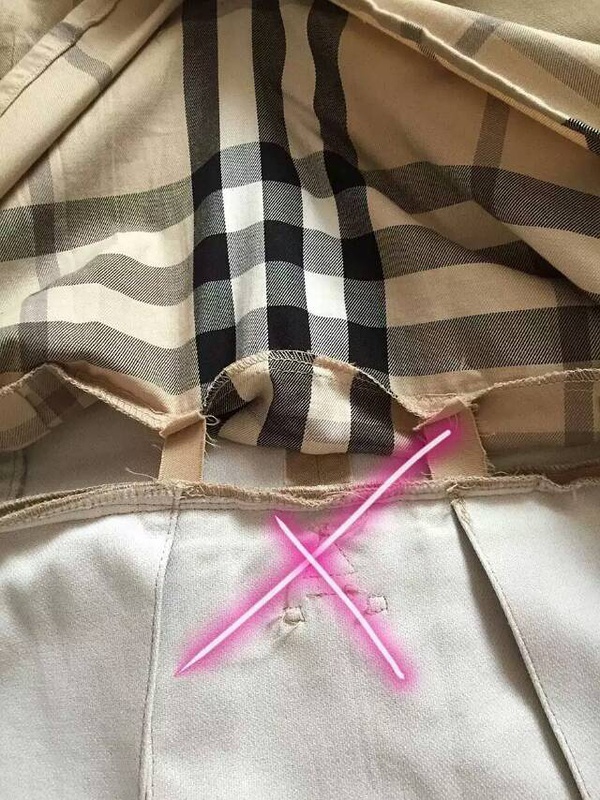 真貨非常平整,純手工縫制的,一件風衣要花好幾個小時縫制,細節決定成敗,怪不得人家賣辣么高的價格還能立足百年!