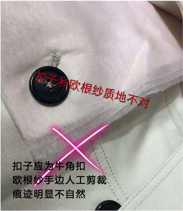 我們用“Burberry London系列的歐根紗袖與嘎巴甸拼接風衣”來說明三圖比對法