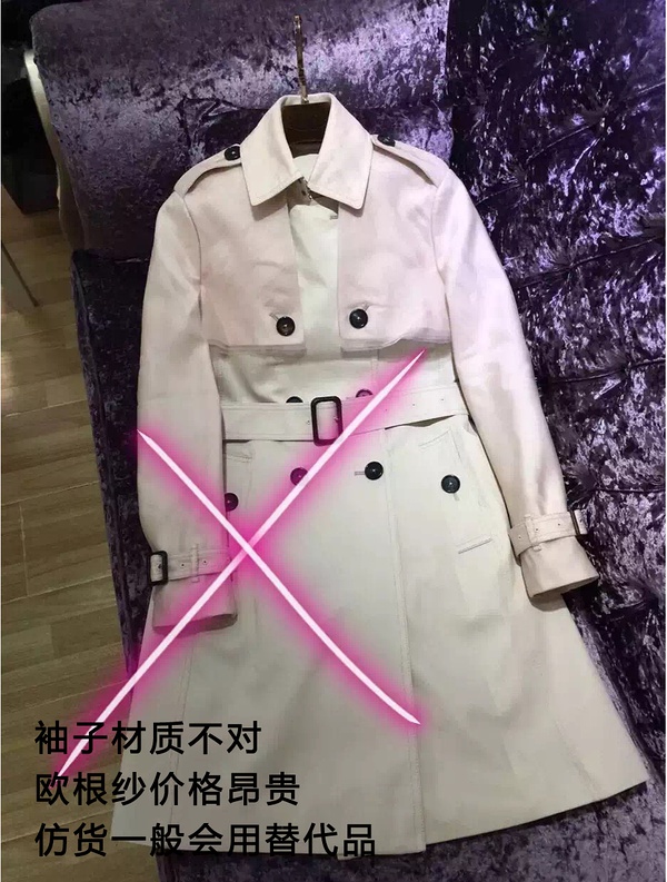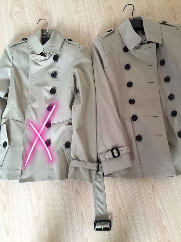 下面我們用 一款Burberry的嘎巴甸短款風衣的仿品和正品做比對分析。