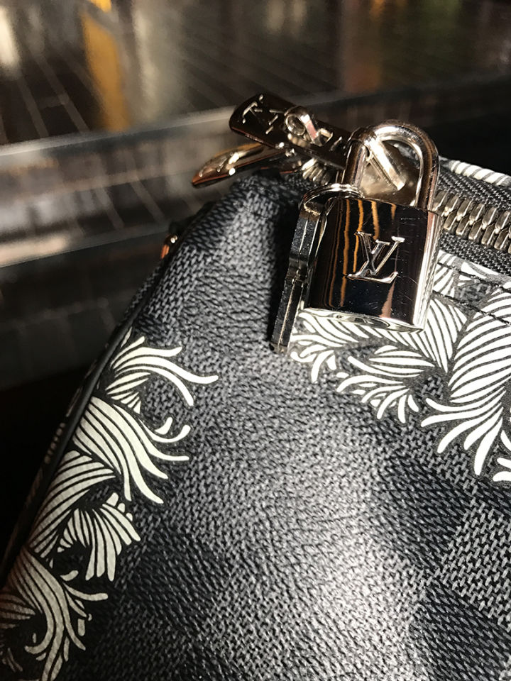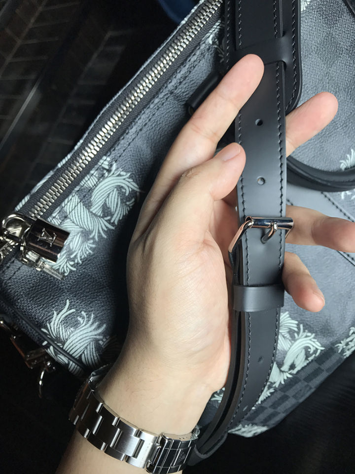 經典老花55裝配了肩帶,這恐怕也是最常見的Keepall,這個大小能夠攜帶的物品比一個21寸的登機箱多一點,一般都是國際旅途的時候我會選擇這個尺寸的作為登機用。如果主要為了配搭造型而不是為了“實用”,從視覺角度而言,身高180cm以下的人用55以及60大小有點比例失調,顯大。