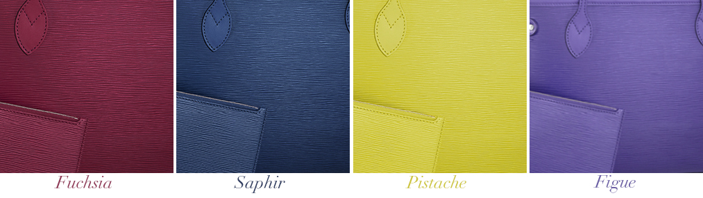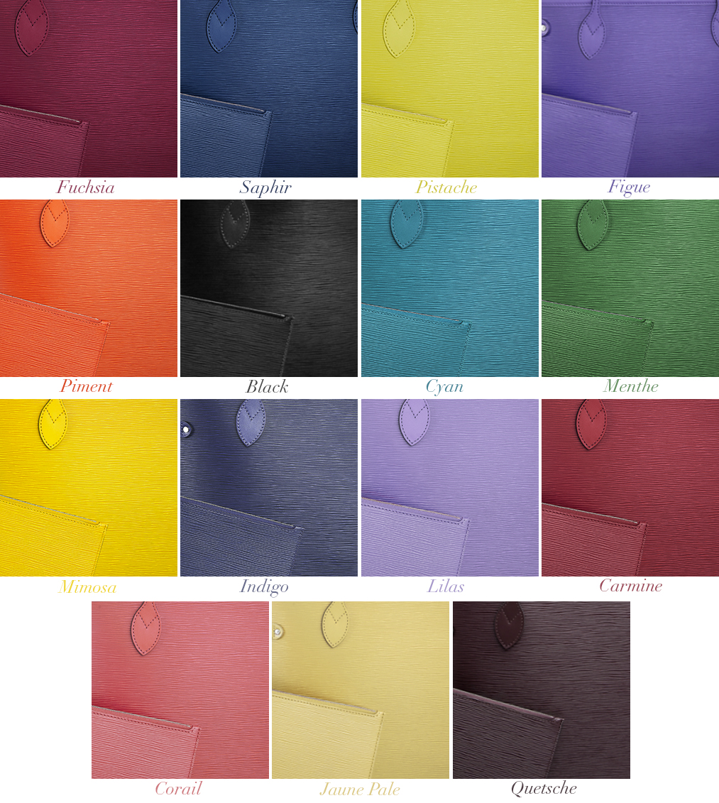 Epi皮革的Neverfull只有兩個型號,小號和中號;每個size對應了不同的顏色選擇。