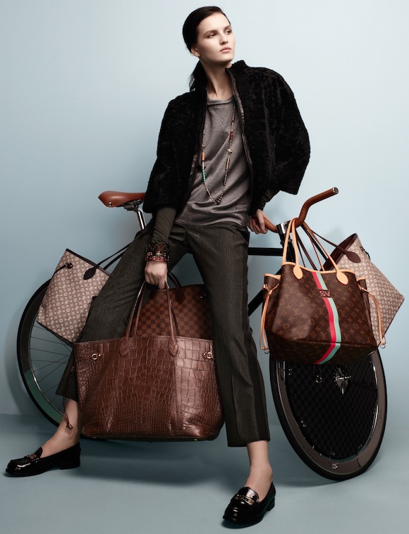 面對市面上大大小小的各種高仿,LV也拿出絕招推出了私人定制系列,顧客們除了可以選擇在包包上印上獨一無二的字母外,還可以用通過Mon Damier Graphite在線服務設計富有個性的彩色條紋以及字母。讓傳統的Neverfull多了不少生趣。