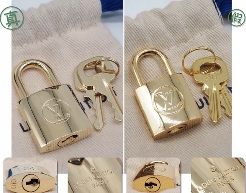 假貨的鎖從色澤到做工都透露著一股土味,有點(diǎn)像我家樓下配鎖店的出品。鑰匙和鎖上的數(shù)字編碼都印的非常粗糙,而且鑰匙圈還挺大的。