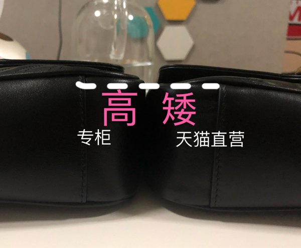 專柜:高度將近7cm(含邊線);天貓直營:高度6.6cm(含邊線)矮于專柜包體