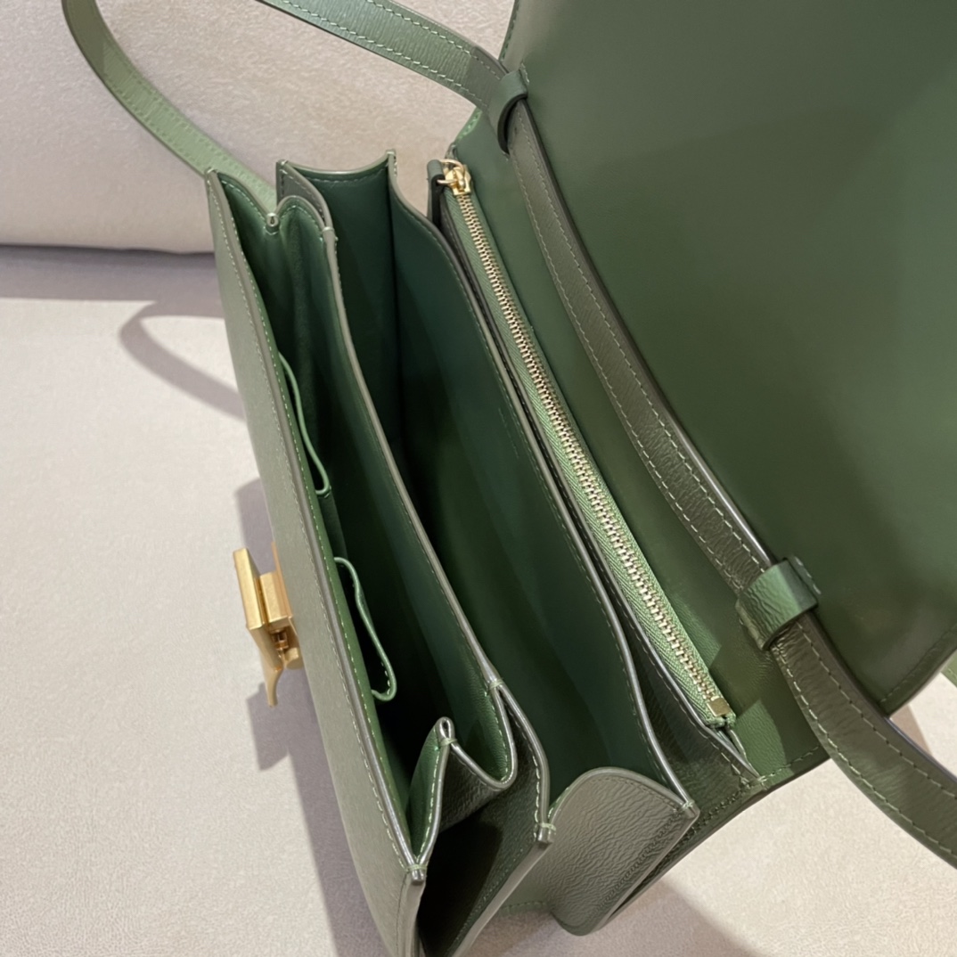 真包上logo的“E",三條橫線不對齊,是按照中、短、長的比例來排列的。“C”字母應該符合Celine的美學,帶有女性特有的纖細秀氣,“P””R”兩個字母也同樣道理應該帶有柔美的氣質再說“S”,女人標準的“ S”線條,應該上小下大,所以我們的正品的“S”應該符合這個規律,上小下大。