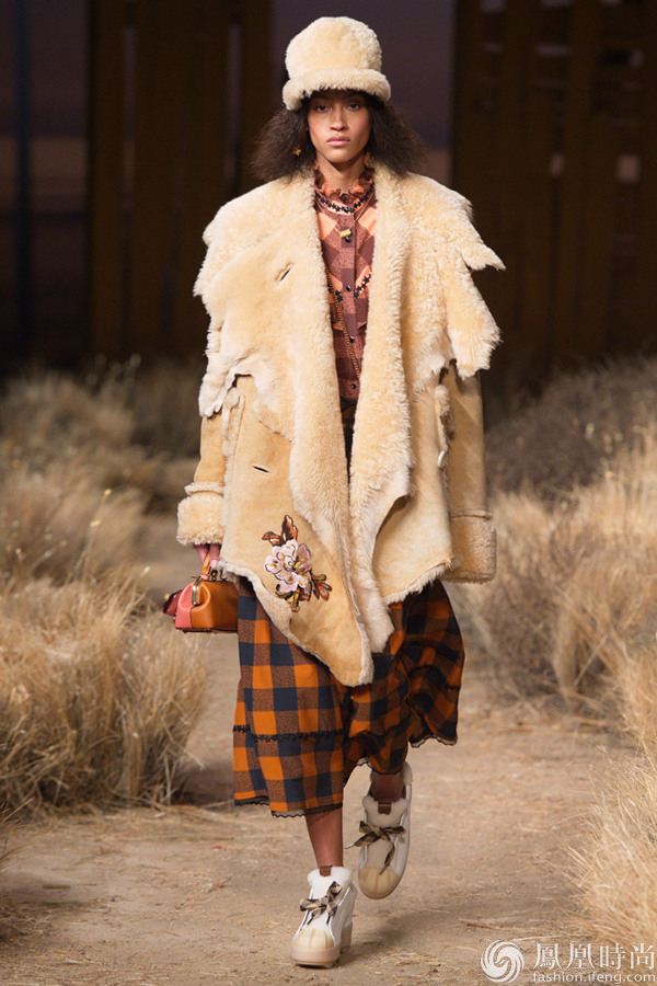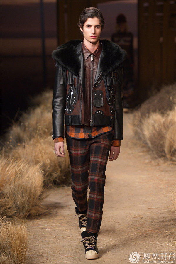 COACH執(zhí)行創(chuàng)意總監(jiān)Stuart Vevers在全新系列中加入了幾套男裝造型:西部夾克點綴流蘇及毛皮衣領(lǐng);仿舊羊毛外套保留原始剪裁和廓形; 拼花毛衣則為整個系列注入幾分玩趣元素。Stuart Vevers以全新理念詮釋品牌文化,在本季造型中表達嶄新態(tài)度,讓這一季的COACH個性鮮明且酷勁十足,同時又不失對細節(jié)和品質(zhì)的追求。