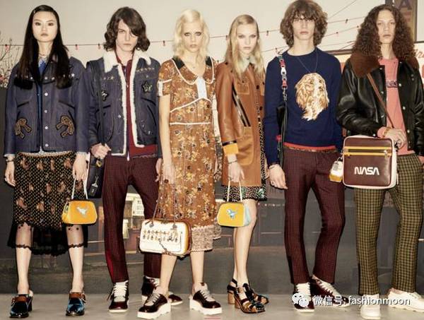 為了鋪墊RUNWAY,我們先簡(jiǎn)單的看看COACH的轉(zhuǎn)型。像VOGUE編輯的秀評(píng)提到的,COACH的成功轉(zhuǎn)型離不開(kāi)Stuart Vevers這位英國(guó)設(shè)計(jì)師/創(chuàng)意總監(jiān)的入主。作為一個(gè)英國(guó)人對(duì)于COACH這個(gè)美國(guó)歷史文化深厚的品牌切入點(diǎn)和看點(diǎn)都是更加有趣的。他的創(chuàng)造對(duì)于COACH是前所未有,有趣的也是實(shí)用的,全新的也是連貫的。前幾季中我們已經(jīng)看到了年輕化的COACH,但是這一季,卻是大家心目中公認(rèn)的更加融合和勇敢的創(chuàng)新。“Uniting the collections got us thinking about togetherness and optimism. That inspired the clothes, the set, the casting. It’s diverse; it reflects real life.”Stuart Vevers說(shuō)。這個(gè)系列是融合的也是樂(lè)觀向上的,充滿了朝氣。從氛圍到設(shè)計(jì)各個(gè)方面,看的出他想要的多樣性和對(duì)于美國(guó)文化以及生活的真實(shí)反應(yīng),男孩女孩在一起,這是一場(chǎng)融合的秀。