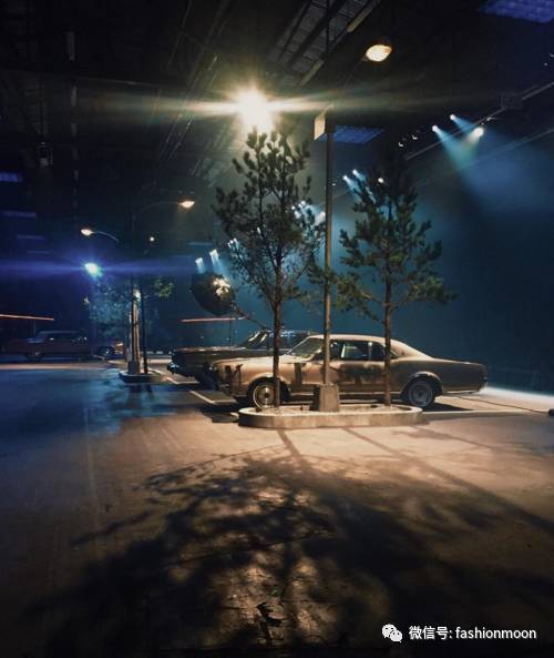 紐約的冬天太冷了,進(jìn)場(chǎng)后一陣暖流襲來(lái),拯救了我的生命。這場(chǎng)秀在Pier 94舉辦,場(chǎng)地很大,室內(nèi)空間被布置成了室外的模樣,一個(gè)朦朧復(fù)古的紐約,仙氣繚繞,剛開(kāi)始以為會(huì)是一場(chǎng)"霧霾秀"。