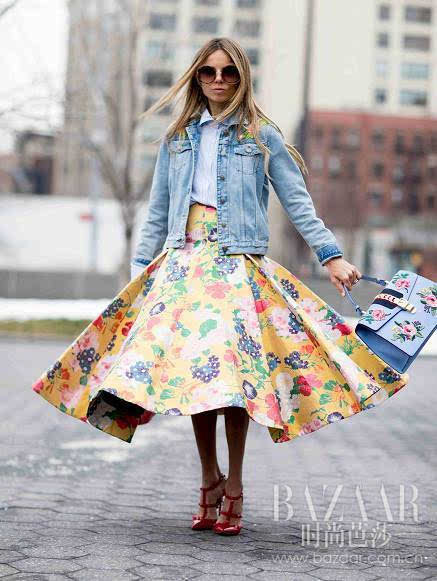 這款花卉刺繡的Gucci包依舊風頭不減,繼續火爆時尚圈,包包上的花卉刺繡與裙子上的花卉相呼應,十分和諧