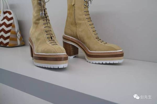 我們在后來Hermès預(yù)覽中更細(xì)致地看到這款靴子的設(shè)計(jì)。鞋底保留了沙漠靴的厚底,Hermès運(yùn)用了不同層的顏色對比,非常有設(shè)計(jì)感,卻依舊是很低調(diào)的配色。為了拉長腿型還加上了一點(diǎn)鞋跟,而且靴子特別貼腿型,雖然整體是酷酷的感覺,但穿上特別能凸顯女人味。