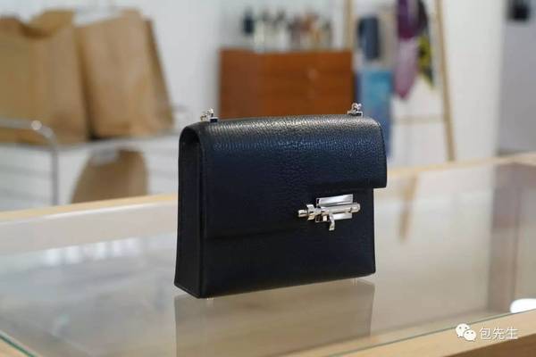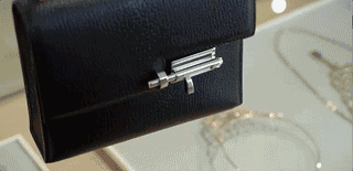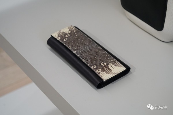 去年新推出的Passant錢包,也可以當(dāng)個(gè)簡單的小手包用,手可以從前面的那一塊皮中穿過去拿著。黑色包身搭配黑白染色蜥蜴皮,拿在手上特別顯質(zhì)感。