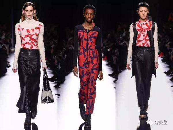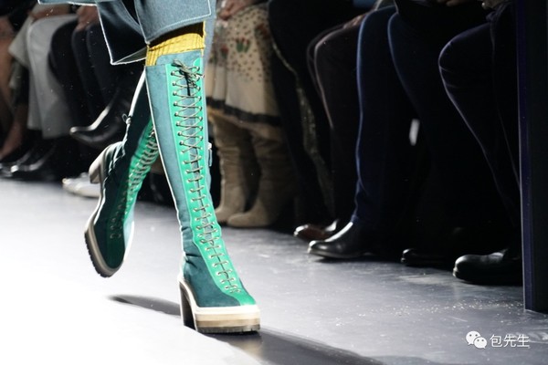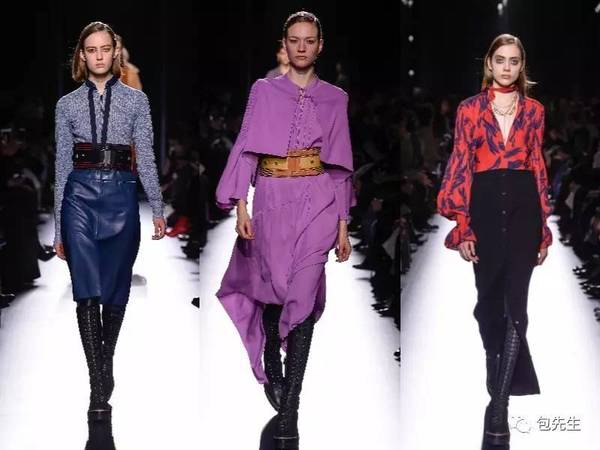 這一季的設(shè)計(jì)很強(qiáng)調(diào)高腰線,尤其使用了很多oversized的皮帶,搭配很高腰設(shè)計(jì)的裙子,裙擺里都搭配了這一季貫穿始終的沙漠長靴設(shè)計(jì),沙漠靴會是2017年一整年的鞋履流行趨勢。