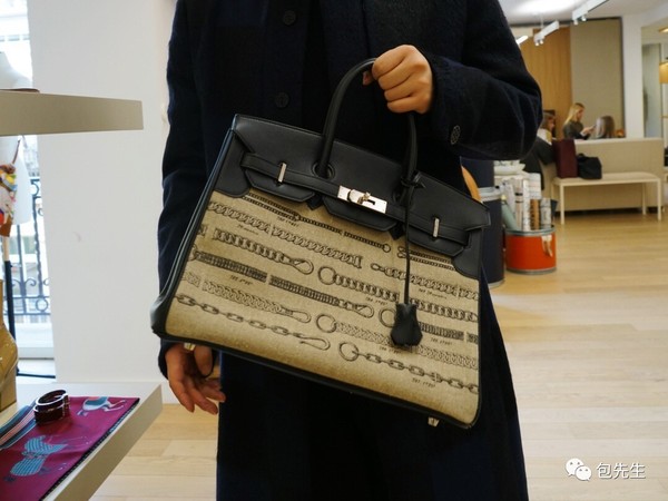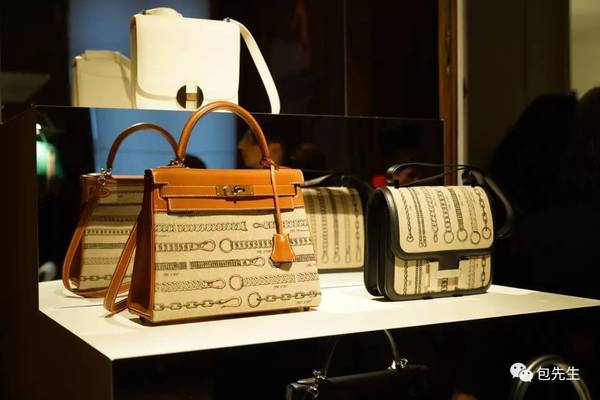 帆布設(shè)計(jì)的還有經(jīng)典的Birkin、Kelly和Constance,好像古老的設(shè)計(jì)紙一樣,印著鏈條圖案的帆布拼接皮質(zhì)的部分,顯得特別復(fù)古,這幾只包就好像從Hermès的資料庫里拿出來的藏品一樣,有種特別厚重的歷史感。