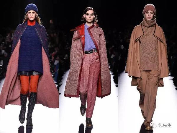 Hermès的斗篷已經(jīng)是很經(jīng)典的單品,這一季也有很多展示,使用了更鮮艷一點(diǎn)的顏色,走路的時(shí)候飄起來露出里面的搭配,非常時(shí)髦。