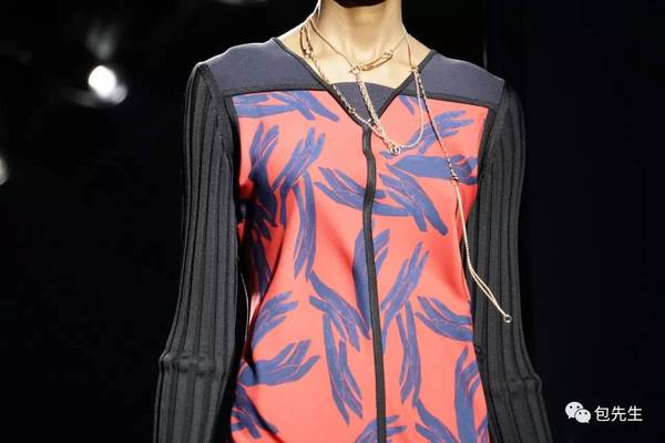 這次特別讓人印象深刻的有絲綢拼接羊毛衫的設(shè)計(jì),據(jù)說這樣的拼接方法是Hermès的獨(dú)家技術(shù)。頂級的絲綢材質(zhì),用上非常藝術(shù)化的抽象圖案,搭配溫暖的羊絨袖,讓實(shí)用簡潔的設(shè)計(jì)一下子高級了很多。