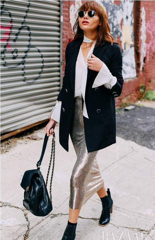 詩詩就在機場背起了雙肩包,不同的是,氣質仙女詩詩選擇了單肩背,時髦又有趣~ 黑白針織外套與內搭毛衣相統一,搭配牛仔紐扣半裙活力十足。