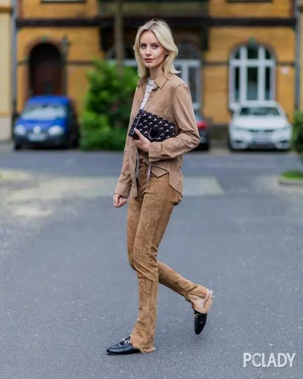 除了爆款包之外,袋鼠毛毛鞋也是Gucci家百搭又經典的爆款,一年四季都有明星和達人們穿它出街。舒適、時髦之外,拗造型就是分分鐘的事情,它也理所應當成了街拍常客。