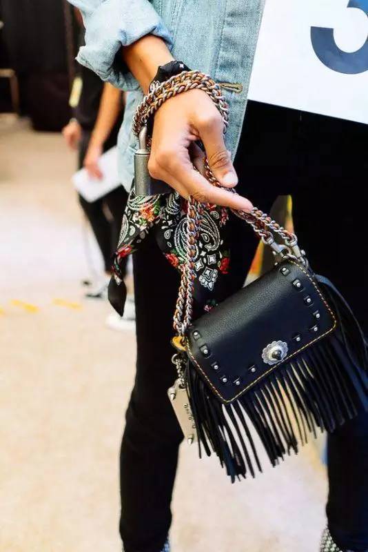 簡單的黑色挎肩包,加上流蘇更彰顯了它的特別。