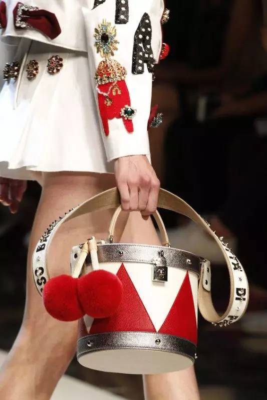 17年春季秀中,這個款式偏向“化妝包”的手拿包設計獨特,有種圣誕的感覺!