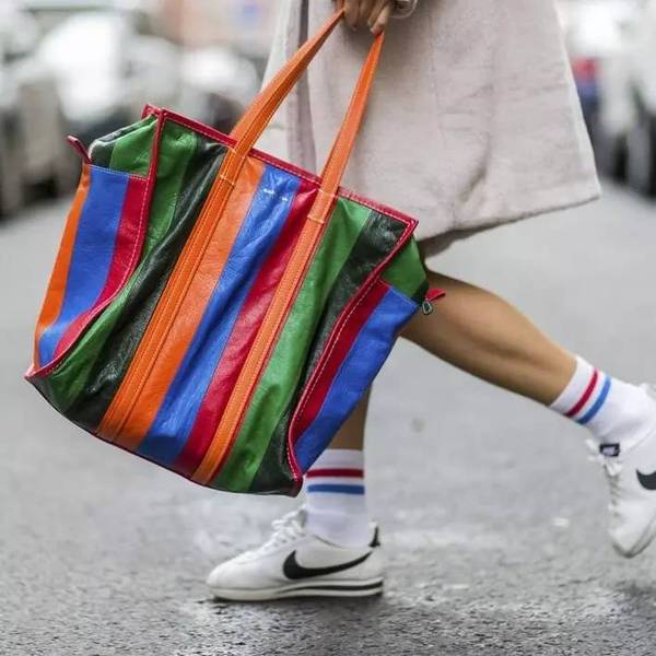 別人笑它如紅白藍,但它卻紅透半邊天。相信不少站在時裝道德高地之人,都會批評 Demna Gvasalia 的設計,但確實地它令 Balenciaga 大賣,這個名為 Bazar Bag 的設計,不斷推出新色,除了間條款外,更有凈色設計,細 size 款式更可以側背,於 FW2017 天橋 show 上,Demna Gvasalia 更以 Bazar bag 配上 Balenciaga 的經典晚裝,可見對 Bazar bag 的重視程度。