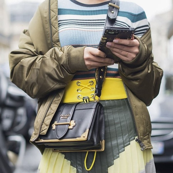 提到 Prada ,大家或許會她的服裝設有更深刻印象。自上季 Prada 推出 Cahier 系列后,方型的小巧設計,加上金屬飾邊,令款式有著不樣的古典氣息,側背設計更是易於配襯型格造型。