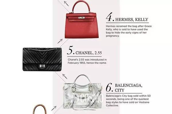 僅次于Birkin 包的是同屬于HERMES的Kelly包。提到這款包當然要從摩洛哥王妃Grace Kelly 說起,1956年,她拎著以鱷魚皮制最大尺碼的Kelly Bag,半掩著她已懷孕的身軀的照片成為了《Life》雜志封面,使Kelly Bag聲名大噪。后來愛馬仕家族在征得摩納哥王室的同意后,將這款手袋正式以Grace Kelly婚前的姓氏命名為Kelly包,成為那個時代的經典標志。
