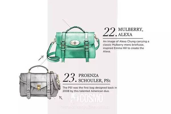 Proenza Schouler雖沒有百年歷史,但靈巧地運用最極簡的服裝線條搭配特殊印花、年輕的形象和經典的裁縫技術還是深受大眾的喜愛。它在2008年先于Mulberry推出了名為PS1的郵差包,融合了郵差包的實用和休閑,模樣也更加年輕耐看,PROENZA SCHOULE當年也憑此包穩拿了CFDA年度飾品設計師大獎。通過這個榜單也不難看出PS1的實力并不怯于與Mulberry抗衡。