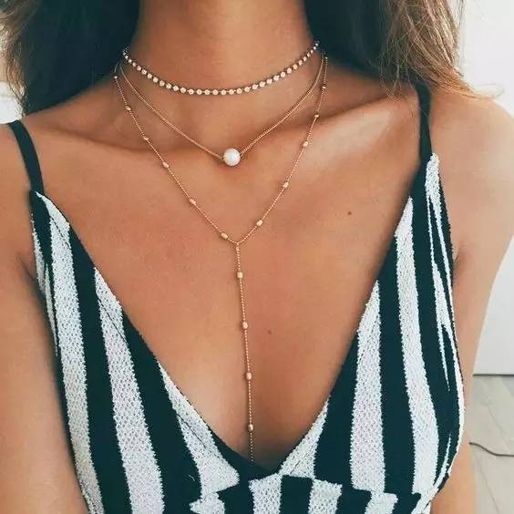 熱浪般的夏天,再沒有一款金屬珍珠飾品更能凸顯你的嫵媚了,像choker一樣疊加佩戴,剛剛那個好的安放在性感的鎖骨,完美的修飾你的頸部線條。▼