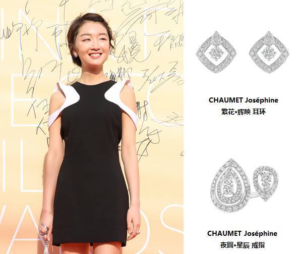 利落短發和黑白連身短裙造型在CHAUMET Joséphine白金鑲鉆耳環和戒指的點綴下,有沒有突顯出周冬雨靈動而富有英氣的獨特魅力呢?