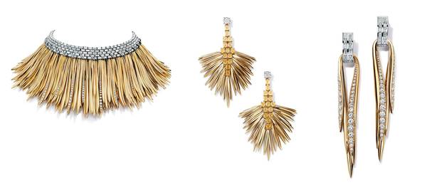 圖左:鉑金鑲嵌鉆石及18K黃金蕨葉項鏈