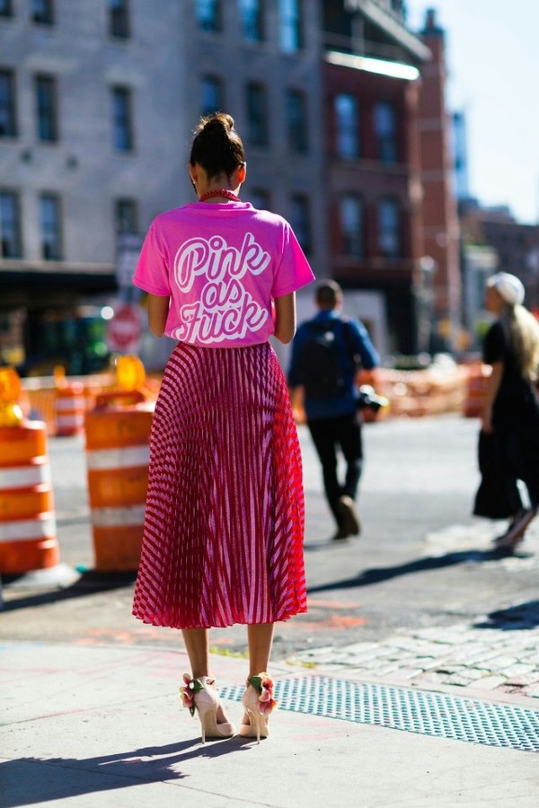 看似簡單的T恤卻在背后深藏玄機(jī),大大的字母讓整套look瞬間充滿活力與個(gè)性,粉色絕對(duì)不是甜美少女的專利。你更需要Pink Power。
