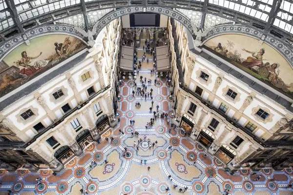 Prada首次早春秀在意大利米蘭伊曼紐爾二世長廊觀景臺拉開帷幕,1913年Mario Prada在這開設了第一家Prada精品店,出于對品牌百年歷史的感悟,以及對這座古城所承載的企業精神的尊重,Prada重新回到發源地,選擇故鄉米蘭作為首場早春秀的舉辦地。